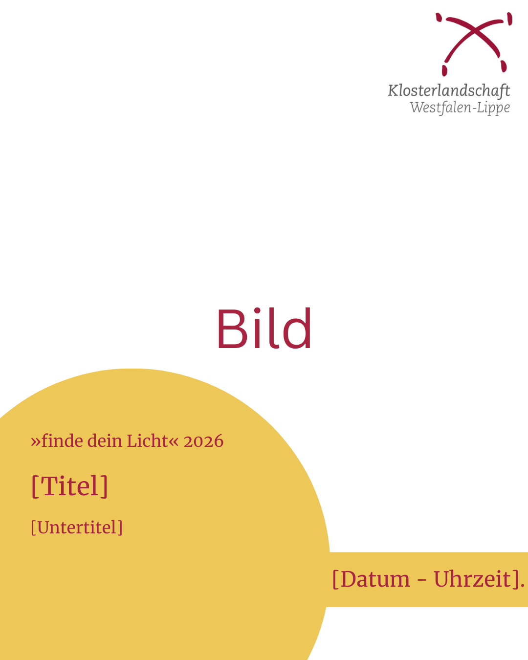 Wir freuen uns sehr, dass Sie in diesem Jahr an "finde dein Licht" teilnehmen und die Klosterlandschaft Westfalen-Lippe dadurch einer breiteren Öffentlichkeit bekannt machen! Damit Sie Ihre Veranstaltungen auch selber bewerben können, haben wir auf dieser Seite wichtige Informationen und Material für Sie zusammengestellt.